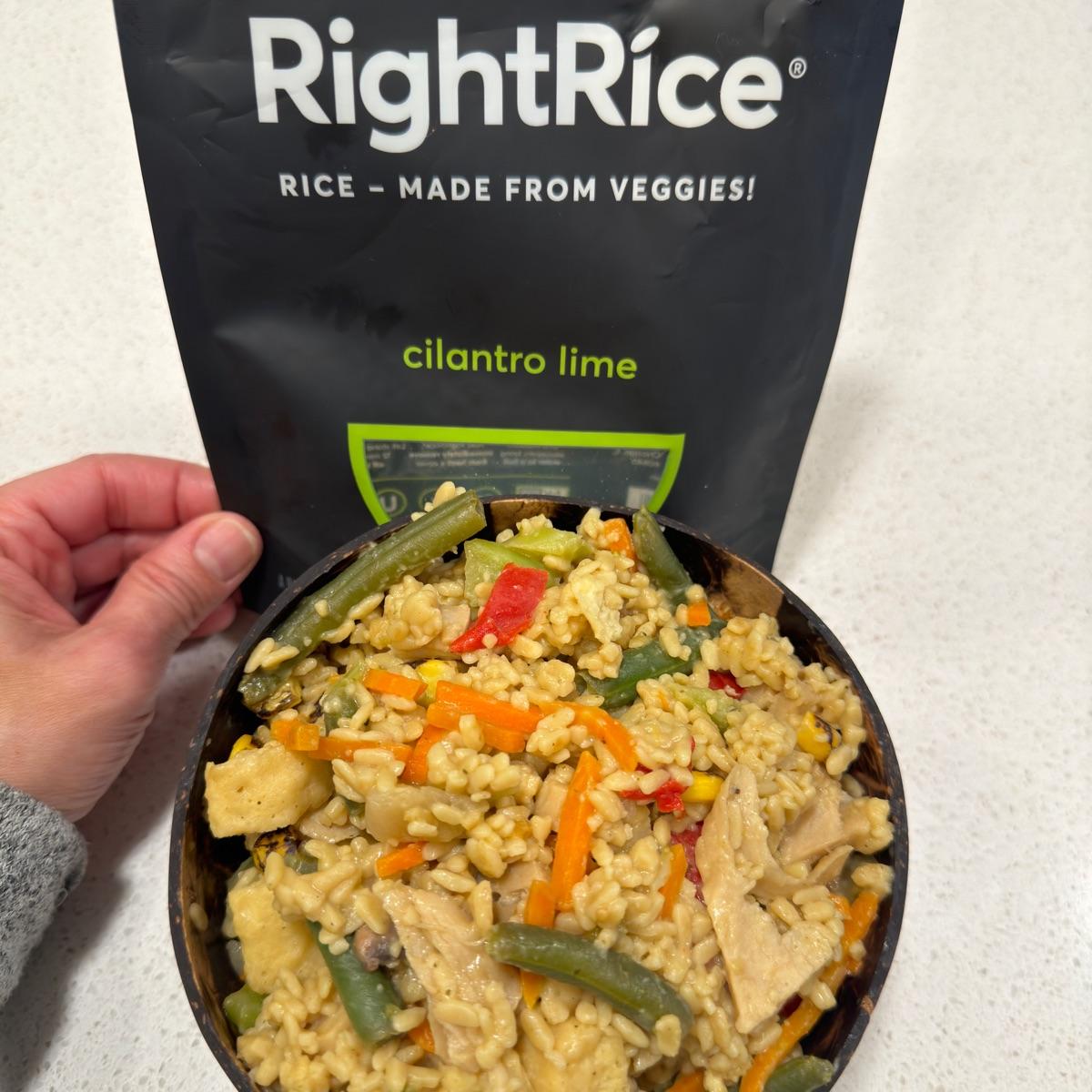 Today I received my #veganisnotscary week 8 giveaway winnings! Right in time for dinner prep for tonight. I was wondering what I was going to make. I received an assortment of these seasoned lentil rice packs by Right Rice. I immediately thought what better than a mixed veggie cilantro lime rice with daring plant based “chicken” pieces and cut up @justegg foldables. I added TJ’s Hatch Valley Salsa for some added flavor!