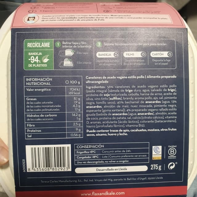 En La Sirena tienen un montón de productos congelados veganos de Flax & Kale! Estos canelones estaban muy buenos y su precio estaba muy bien, 3'99€ el paquete.