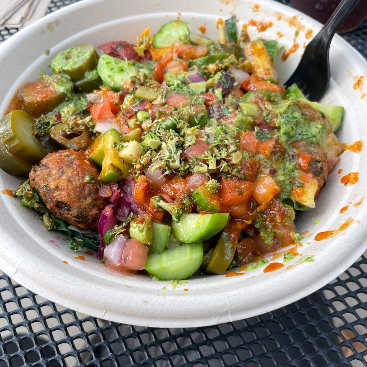 This was very good. Be sure to sub out the feta for something else. I got the harissa and the eggplant in addition to the regular red pepper hummus. The falafel wasn’t especially crispy, but it had a good flavor. I would definitely get this again. #mediterranean
