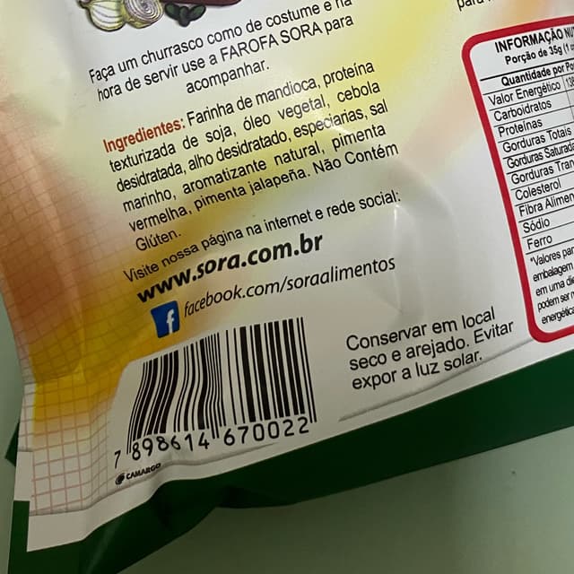 Que DELÍCIA! Me surpreendeu por vir em saco mas ainda assim ser super crocante, sequinha mesmo. Ingredientes: Farinha de mandioca, proteína texturizada de soja, óleo vegetal, cebola desidratada, alho desidratado, especiarias, sal marinho, aromatizante natural, pimenta vermelha, pimenta jalapeña.