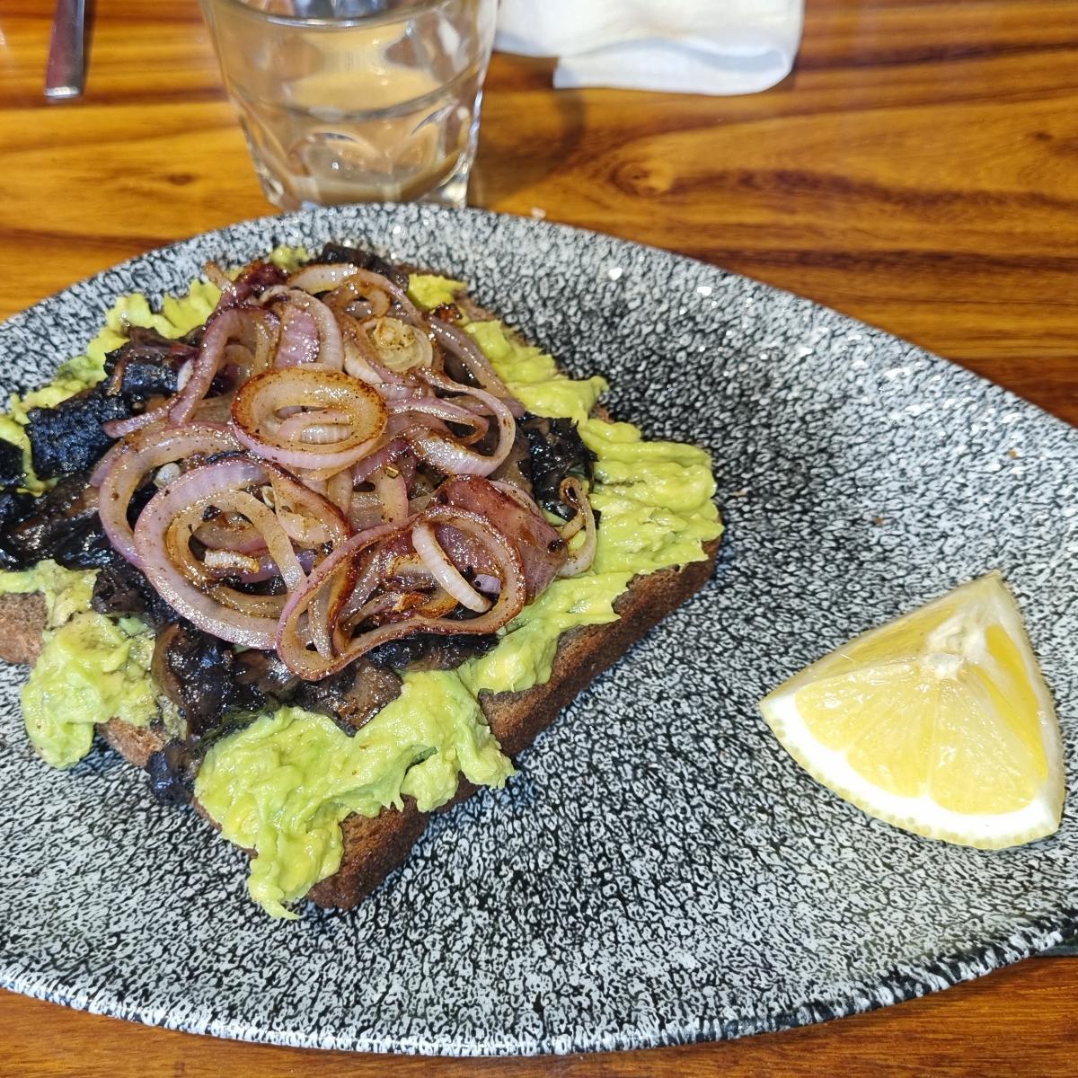 Lovely smashed Avocado 🥑 on toast. Added sautéed mushrooms 🍄 and onion. Great breakfast. Friendly service, very willing to adjust the menu. Casual eating environment.