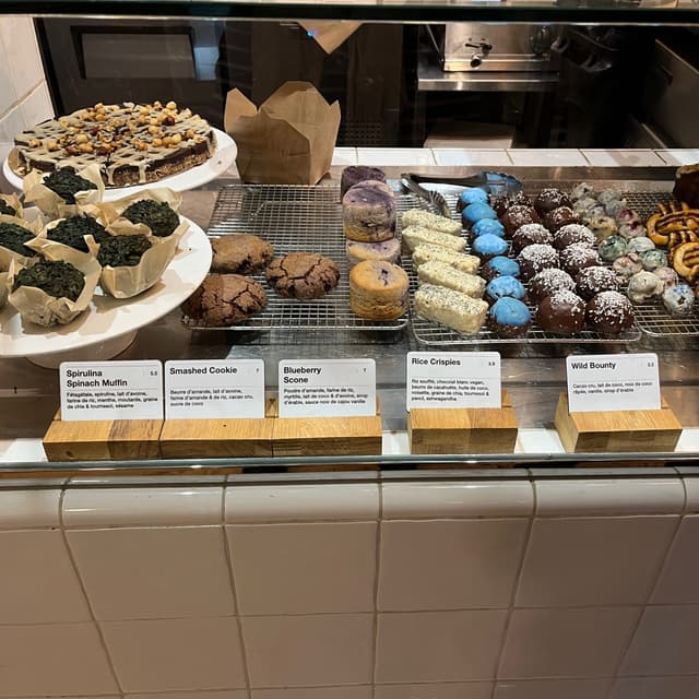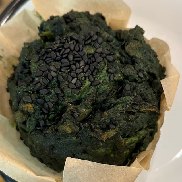 🌿 This looked very healthy and original so we decided to try even though it was €5,50. It has spirulina, spinach, Fétagétale, oat milk, rice 🌾flour, mint, mustard, chia, 🌻sunflower, and sesame 🌱seeds. We were not so impressed and the nicest bit is the feta type 🧀cheese in the middle. Maybe we should have tried one of the sweets instead but I was still reeling from my viennoiserie 🥐breakfast smorgasbord. #veganinfrance #french #spinach #allveganrestaurant