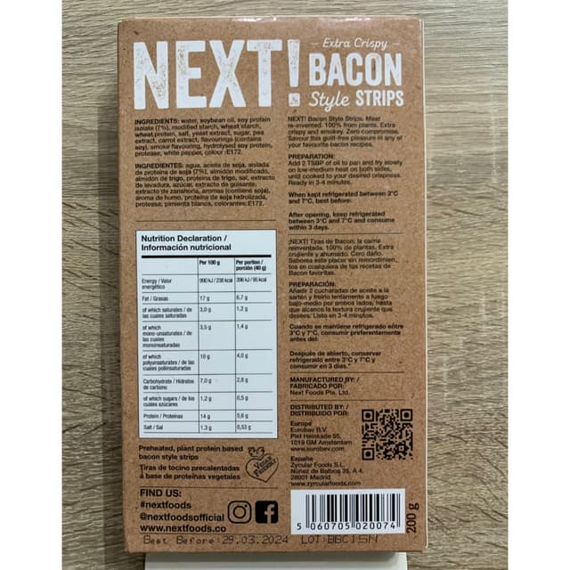 Estaba muy bueno! Con el fuego alto consigue una textura crujiente. No le doy las 5 estrellas porque es caro, cuesta 6,99€ y vienen 10 tiras, que dan para hacer 20 dátiles con beicon en total. Lo compré en la Sirena.