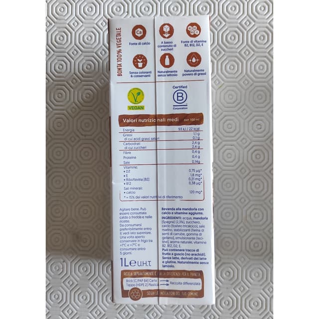 Buon latte di mandorla, la tostatura lo rende più saporito. Sarebbe ottimo se fosse aumentata la quantità di mandorle 🥛