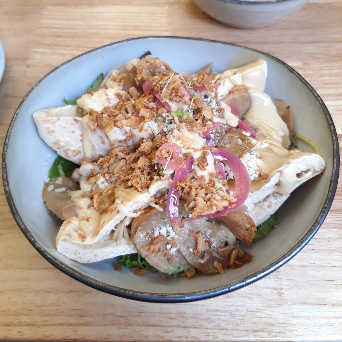 Pretty good. I'm not a fan of seitan but it goes well with everything else, and the white sauce has a particulat taste, not my favorite, but the dish is still worth trying.