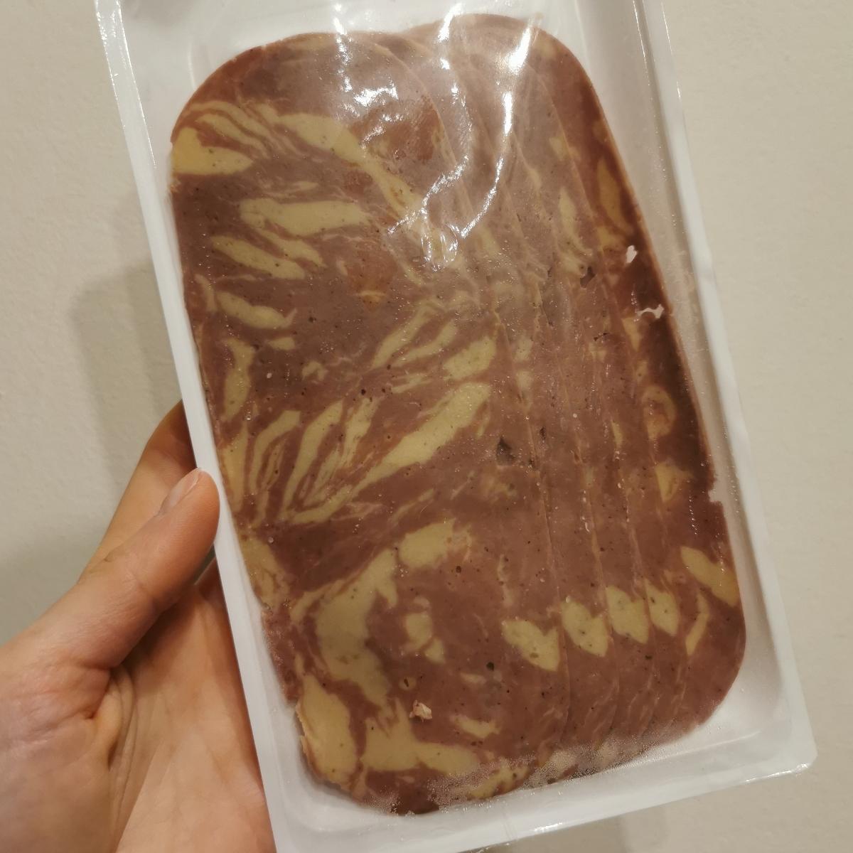 Tirando le somme, carino l'aspetto marmorizzato, ma un fake bacon fatto in casa, pure con le semplici carote e i giusti aromi, dà più soddisfazione, considerando anche la confezione in #plastica per soli 90 g di prodotto #unsustainable