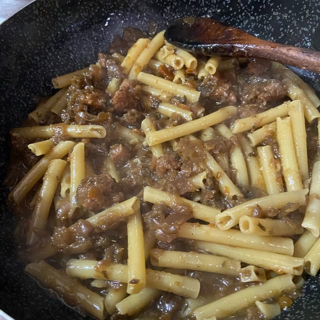 Ho preso da asporto questo sugo alla genovese che ho poi scaldato in padella per condire la pasta (rigorosamente gli ziti spezzati). Che dire: Super saporito, cremoso, gustoso… credo la vaschetta sia una porzione da quattro ma ce la siamo spazzolata in due 😅 W Macelleria vegetariana Gagliano tappa obbligata ogni volta che tornerò nella mia Napoli 💙 #genovese #sugovegano #napolivegan