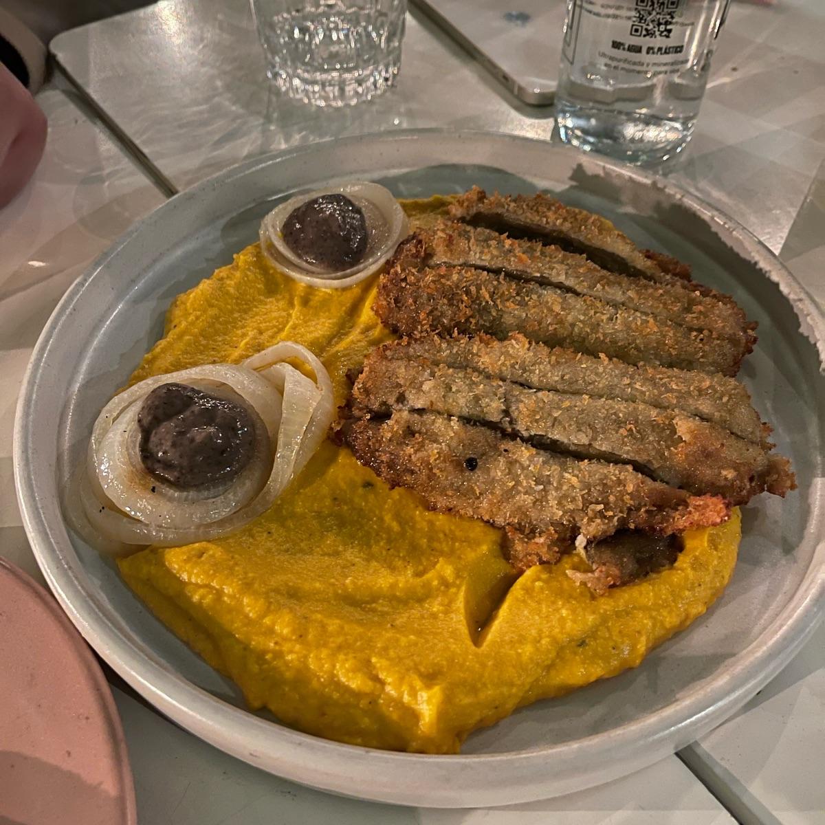 mmm lo pedí especificamente por el pure de zapallo. vino frio. el puré es rico pero le falta dulzor. la milanesa tiene buena crocancia pero le falta sabor. es un plato que podria ser un 1000 pero es un 6
