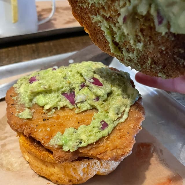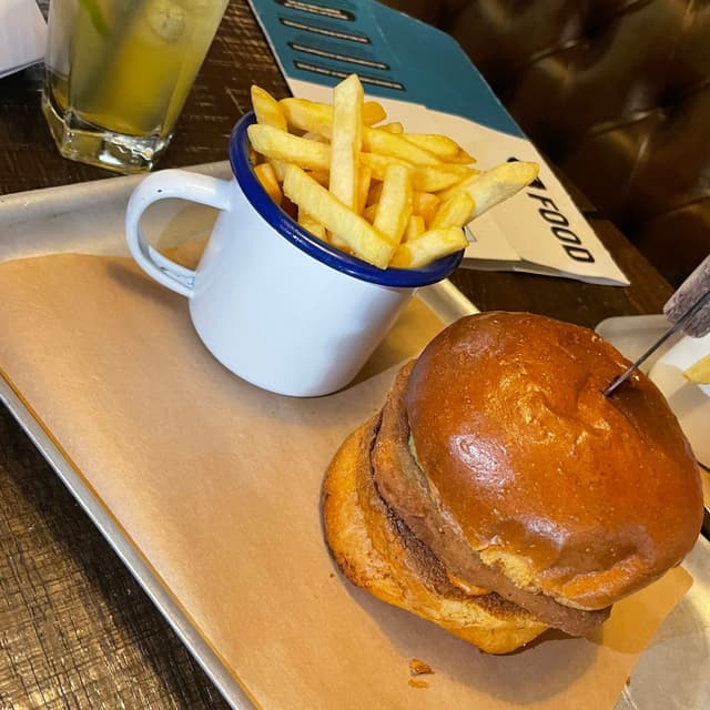 Not a good burger🍔. It sounded so promising: “Crispy tindle chicken burger, avocado, red onion, cajun mayo & coriander”. But it was very tasteless. The patty, the mashed avocado, all tasteless. What a pitty. Especially for the price cause the burger + the fries were €17.5! 🤑🍟
