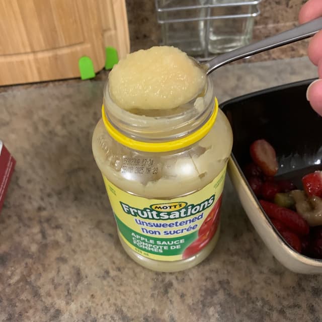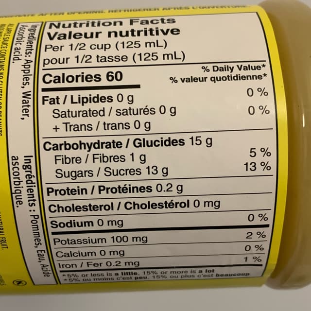 I like that it’s fat-free, but it does contain a lot of sugar; a half cup has 13 grams of sugar (or 13% of your day’s recommended intake of sugar). Thankfully it’s from the apples themselves (sugar is not an ingredient, hence “unsweetened”). Imagine the sugar content of the sweetened version!!