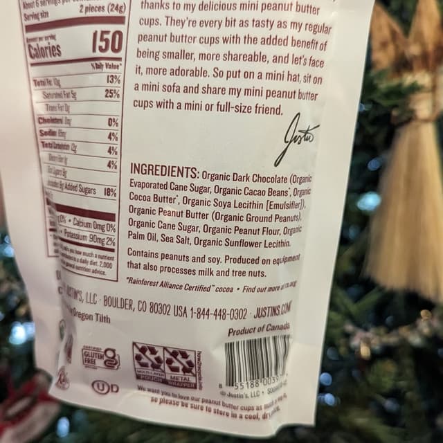 Parte di un apprezzatissimo regalo di Natale, questi sono un piccolo guscio di cioccolato fondente ripieno di burro d'arachidi. Come i Reesee's, ma vegani e meno dolcj!