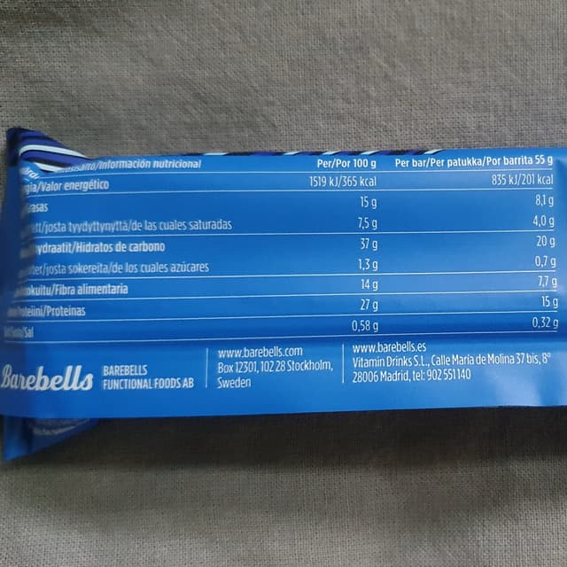 My favourite flavour out of the Barebells Vegan protein bar selection. The 55g bar contains 15g of protein and no added sugar.