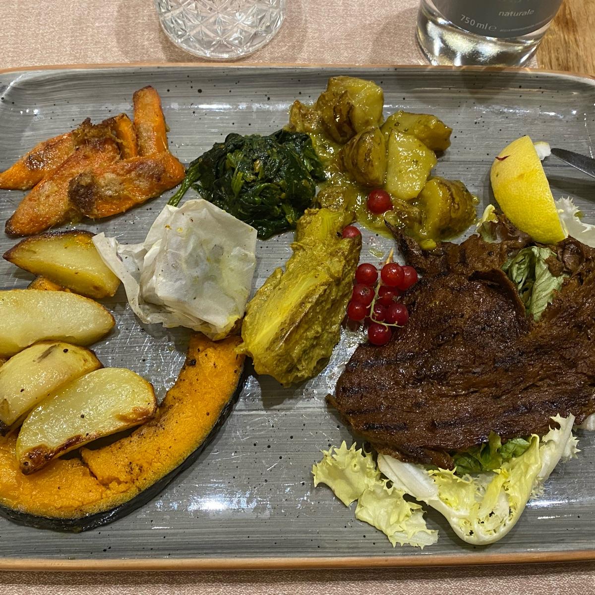Piatto ricchissimo di verdure con seitan fatto in casa super buono (in questo caso era abbastanza salato, ma avendo ripreso lo stesso piatto un altra volta, che ahimè era in porzione più piccola allo stesso prezzo, era perfetto!)