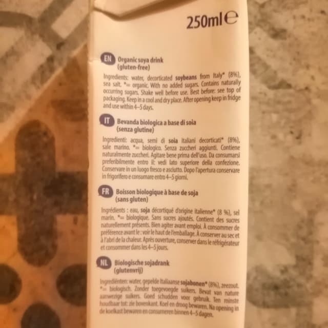 Piccolo brik di latte di soia compreso nel kit di benvenuto all'ingresso del #vegandaysfestival a Pontedera. Mi é piaciuto, anche se per me l'Alpro é insuperabile. The bridge é una buona marca che di solito si trova nei negozi bio.