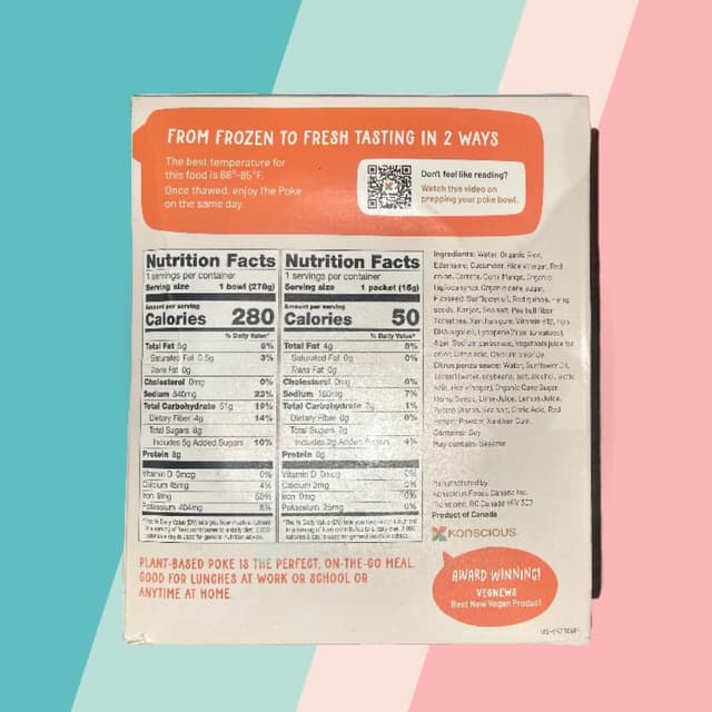 One (278g) bowl provides just 280 calories from 5g of fat, 51g of carbs and 8g of protein. The (15g) sauce packet provides 50 calories from 4g of fat and 2g of carbs. I love that this has an ample amount of protein in it. There’s also 50% of the RDA of iron in this. 🤩