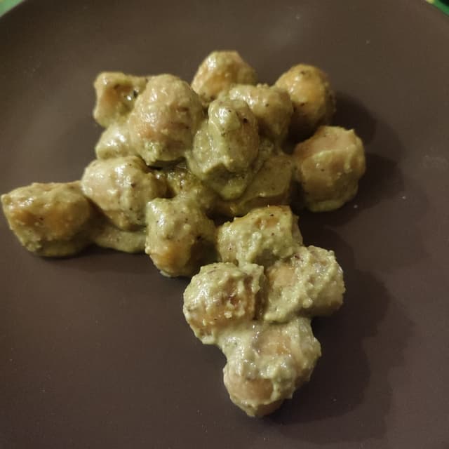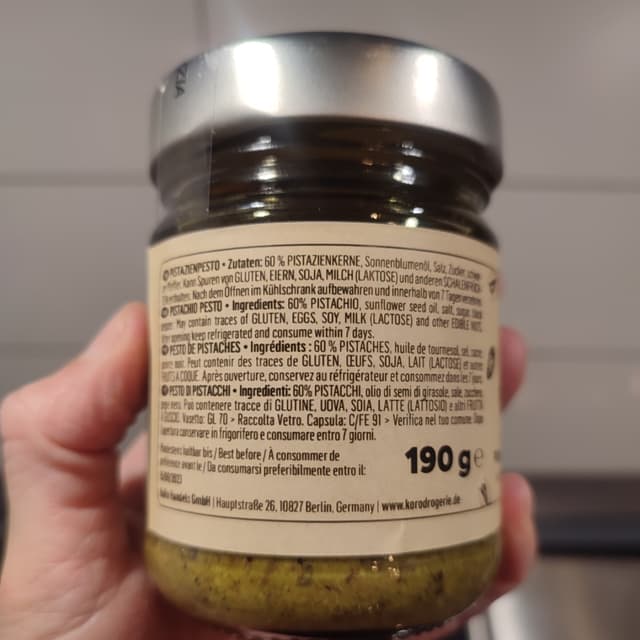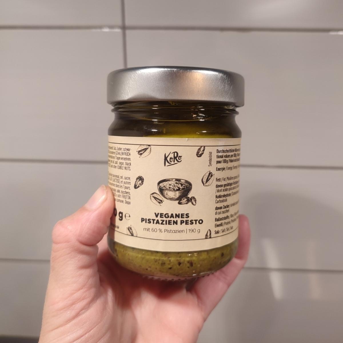 Questo pesto di pistacchi era la sorpresona finale del calendario dell'avvento vegano di Koro di natale 2022. Direi una sorpresa molto gradita! Mi è piaciuto molto, i pistacchi sono il 65% e il resto olio di semi, sale e zucchero, credo che le proporzioni siano ben equilibrate per ottenere il giusto sapore e consistenza. Non ha nessun retrogusto strano o artificiale, sa davvero di pistacchio (cosa che con il pistacchio non do mai per scontata). Io l'ho usato per condire degli gnocchi alla zucca e con il senno di poi direi che ne basta poco allungato con un po' di acqua di cottura per lasciarsi gustare senza coprire il sapore del resto degli ingredienti del piatto.