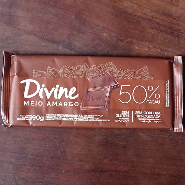 Ingredientes: Açúcar, massa de cacau, manteiga de cacau, emulsificantes: lecitina de soja e esteres de ácido ricinoleico interesterificado com poliglicerol, aromatizante artificial.