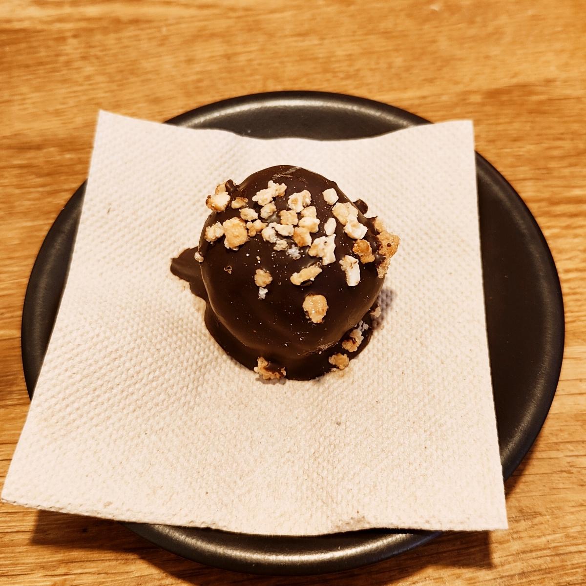 Son bolitas hechas con la masa de tartas y cubiertas de chocolate junto con topping de frutos secos. Están buenísimas 🤤