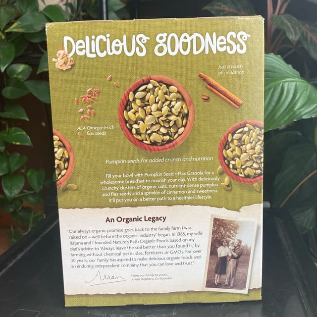 #granola #vegangranola #naturespath #organic #nongmo #vegan #veganfortheanimals #wholegrains #oats #seeds #cinnamon #sustainable #familyowned #veganuary2024 #veganuary #healthy #honeybelongstothebees #cereal