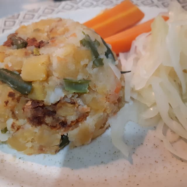 Cook potatoes drain and add plantbased milk and a knob of butter and seasoning mash and serve