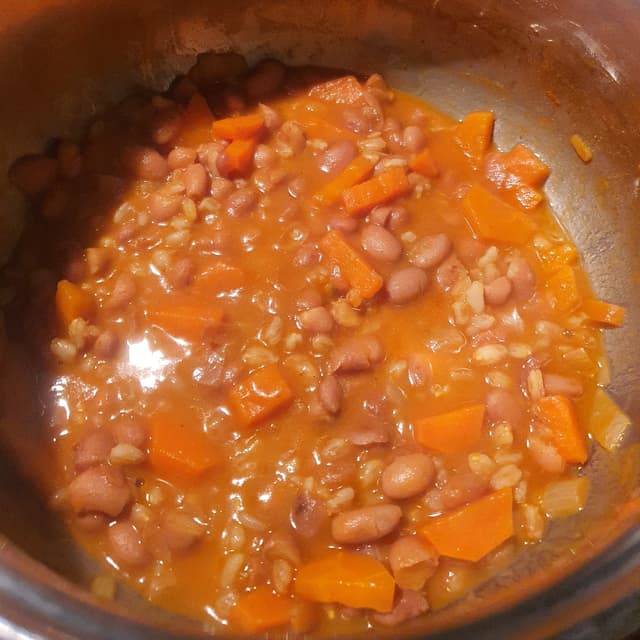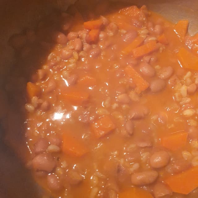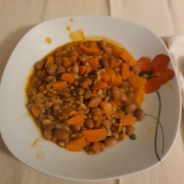 Fagioli borlotti della Valfrutta utilizzati per fare una buonissima zuppa con ceci, carote e farro. Ottimi!