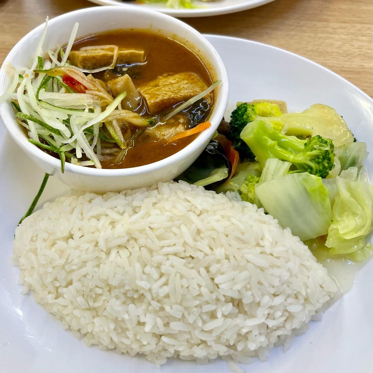 Generous portion of rice and dishes. The mock fish was rather hard, should be factory made ones. The tom yum gravy used was not too bad, very sour ans spicy.