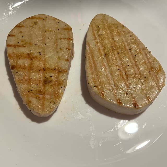 This was good. I probably could’ve done a better job with this. I should’ve used a tad bit more oil and seasoning. My opinion is that this tastes just slightly fishy so it’s really important to season it well. I’m not a fan of the fish taste. I should have seared it then grilled it. Oh well. Next time.