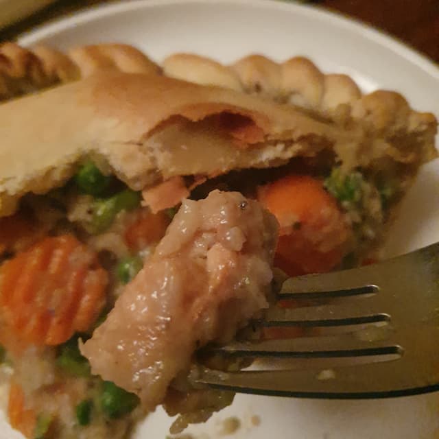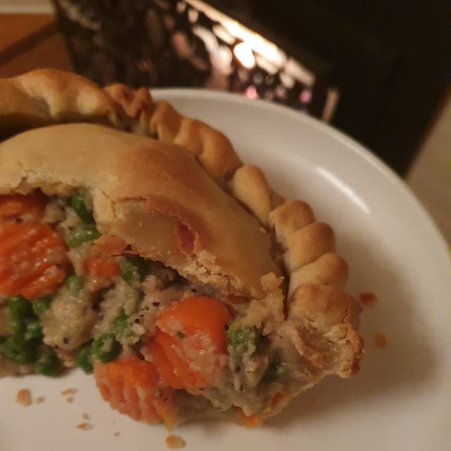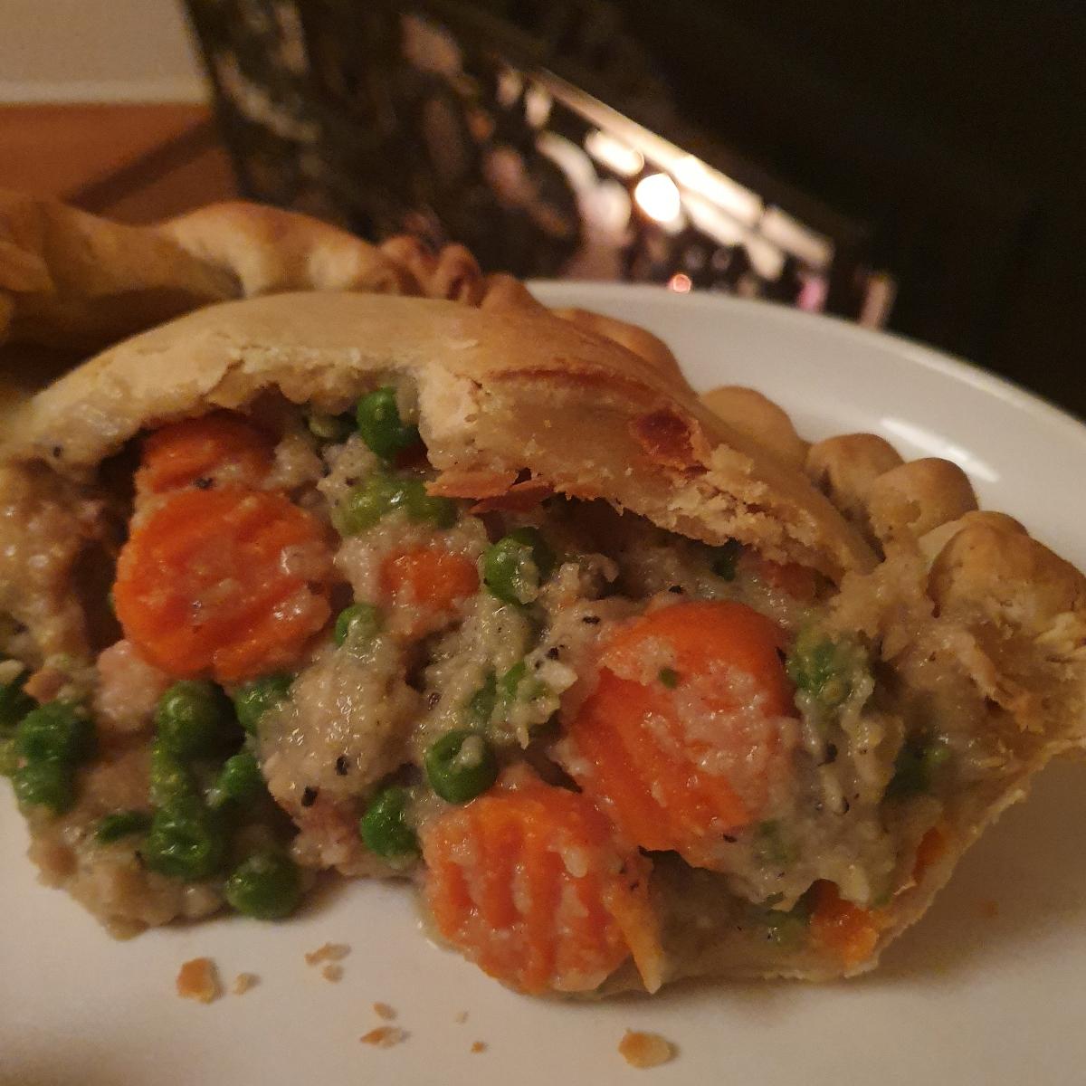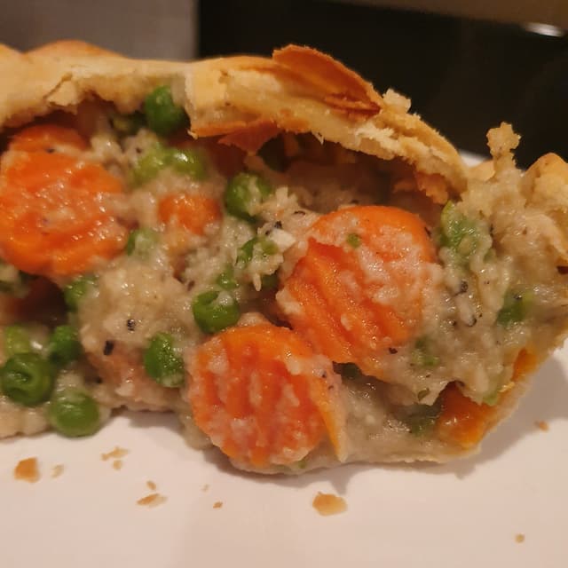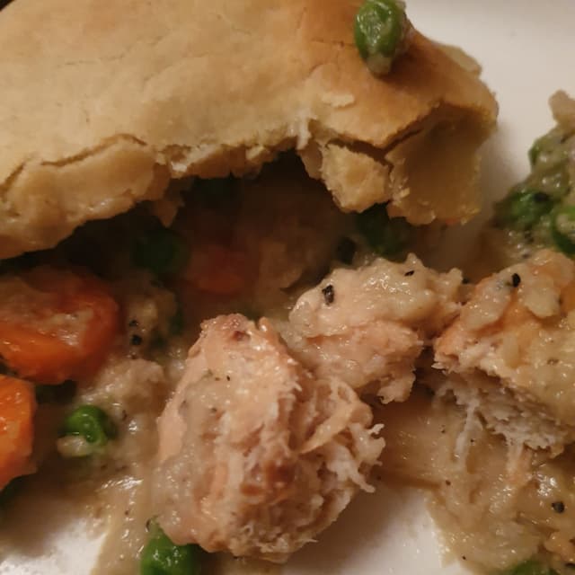 Oh my gosh! BEST chicken pot pie ever!! Everything about it is perfect! Big juicy chicken pieces, carrot, peas, all inside a delicious flaky pie crust 🤤 such nice flavors! honestly I can't imagine a pot pie being better than this!