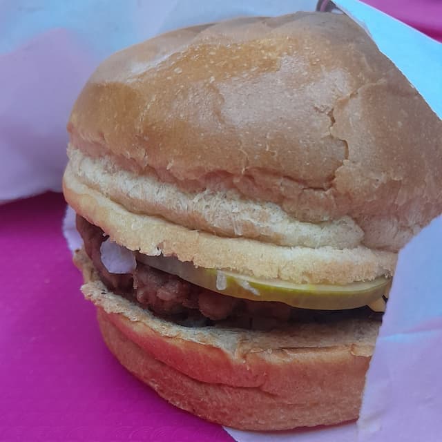 Hamburguesa Fox Royale Simple en oferta a 3700 pesos hasta el 31 de enero en Vegan Fox + aros de cebolla. Es muy rica. #plantbased #vegetal #vegan #vegano #veganismo #crueltyfree #abillion #argentina #buenosaires #veganbuenosaires #aptovegano #apv