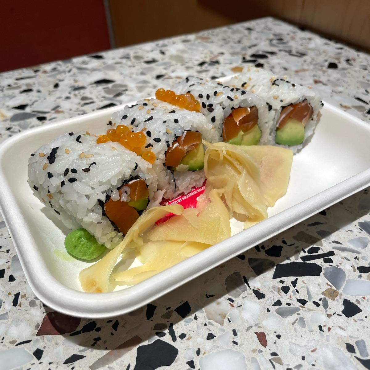 Pleasantly surprise at the accuracy of the taste and texture of this beautiful salmon in this maki roll. With that, I can be stop eating fish and still get my sashimi/sushi fix. :D