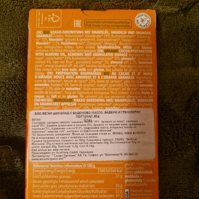 Another successful milk-like chocolate from iChoc. This one is also buckwheat and tiger nut based (not rice based like the original). It's milky, silky with orange pieces on the inside. Yummy!