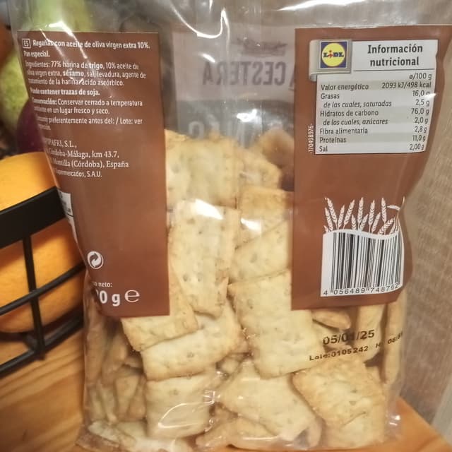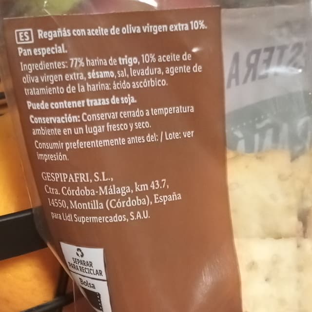 Regañás con aceite de oliva virgen extra. Están ricas, especialmente para untar hummus, guacamole, patés vegetales y similares. Marca de Lidl, bien de precio.