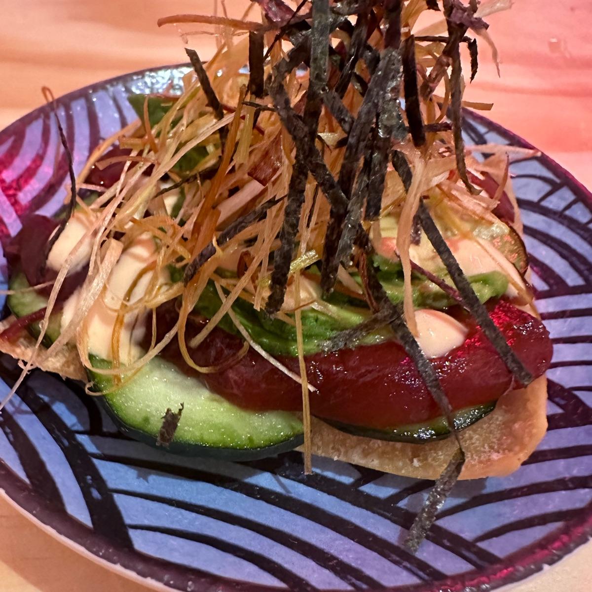 Es la primera vez que visito Godzu y me encantó! Todo está delicioso, me encantó la base de la tostada súper crujiente y el no atún muy rico también, la volvería a pedir