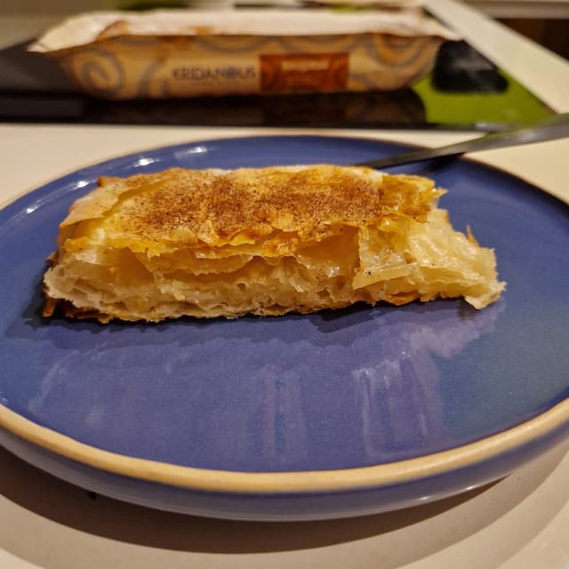 Preso alla Lidl in occasione della settimana greca. È una pasta sfoglia molto croccante ripiena di una dolce crema alla vaniglia. La spolverata di cannella attenua la super dolcezza della crema. Ingredienti non di prima qualità, ma una volta ogni tanto si può fare:P !!