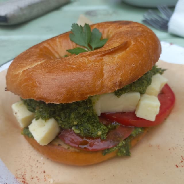 Loved this bagel! The pesto and vegan cheese combination was just perfect đź’ž