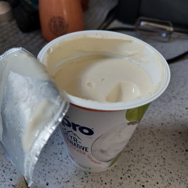 Alpro skyr al naturale. Consistenza ottima, molto acido. Direi che ricorda più un cream cheese che uno yogurt. Infatti, si sta trasformando in una cheesecake di cui ancora non conosco il risultato. Non lo mangerei per colazione, ecco... (la versione al mango, invece é eccezionale). Si trova in Slovenia.