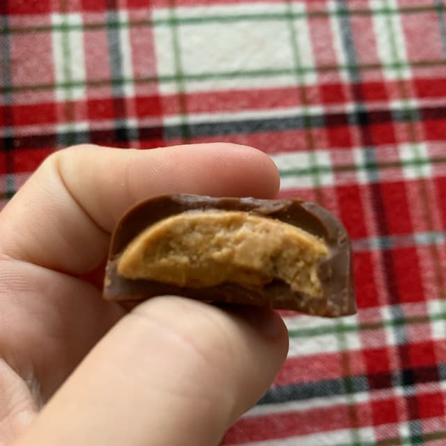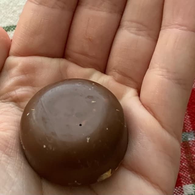 These are kinda like Reese’s peanut butter cups but not at the same time. Comes in a cute dome shape. The chocolate is kind of hard to bite into and the peanut butter is not creamy. It’s good but not my fav.