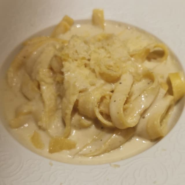 Buon piatto di alternativa vegetale alla classica "Cacio e pepe". Pasta fresca molto buona, come anche il formaggio vegetale di anacardi.