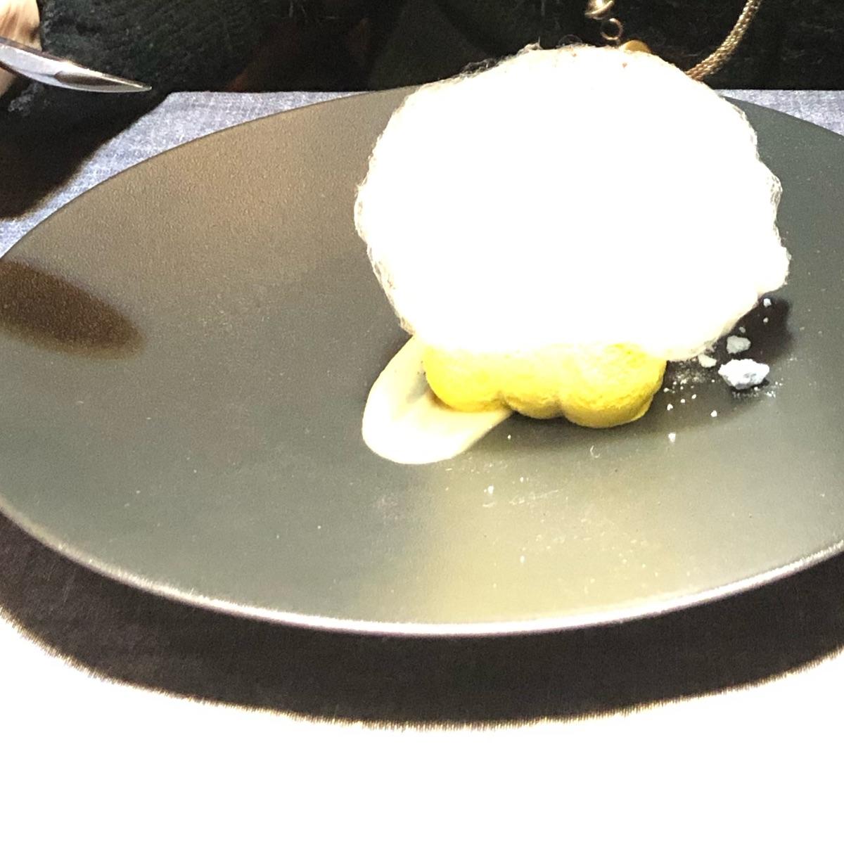 E vogliamo parlare della bellezza nella presentazione? Una nuvola di zucchero filato su palline di semifreddo golden milk (sa molto di curcuma) #dolce #gourmet