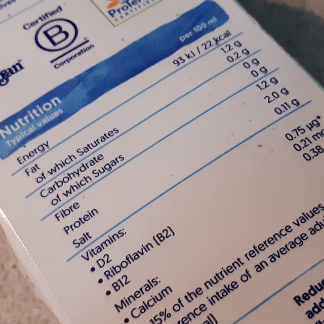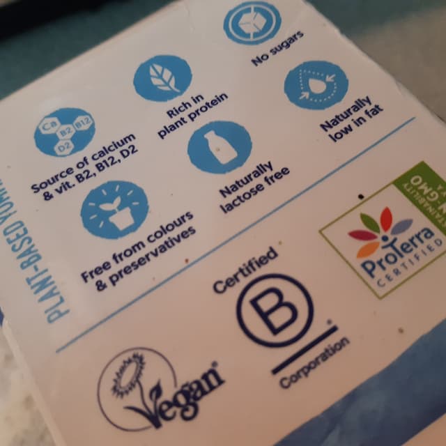 Naturally Lactose FreeDairy FreeGluten free100% plant-basedVegetarian & VeganNaturally low in fatNaturally low in saturated fatLow in sugarsSource of fibreSource of high quality proteinA source of calciumSource of vitamins D and B12. Vitamin B12 contributes to the reduction of tiredness and fatigue.source of Vitamin D