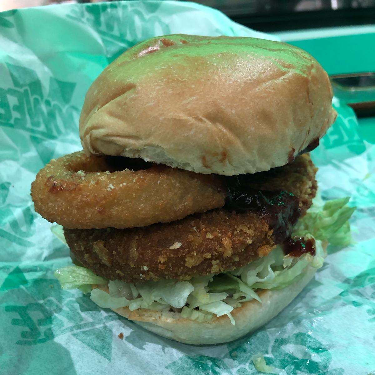 Delicious option of a bbq chicken burger with onion rings. Oowee has lots of choice and amendments, although a little on the expensive side.