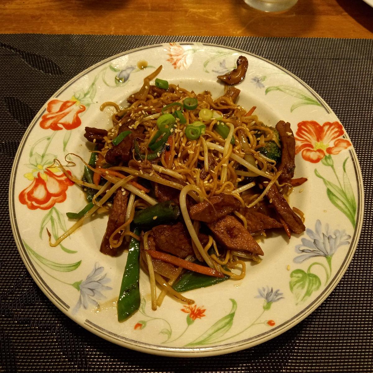 Noodles fritos con verduras y tofu marinado. Muy rico, pero el menú un poco caro.
