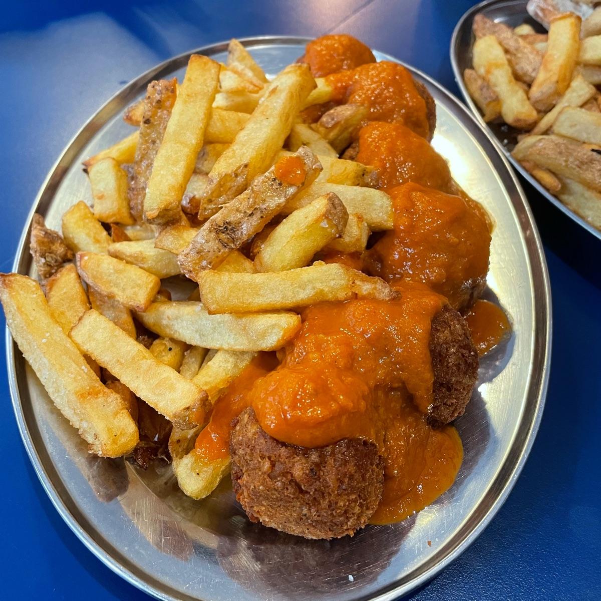 La salsa de tomate estaba de vicio😍 Las albóndigas también aunque la textura no era del todo de albóndiga.