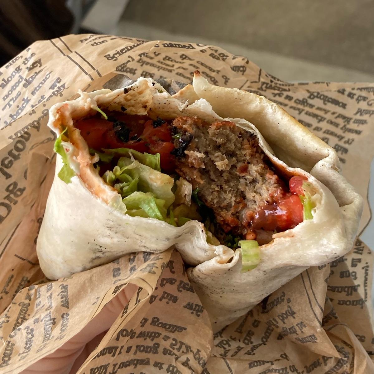 This tasty tortilla was filled with ‘lettuce, tomato & onion, mayo, BBQ sauce & succulent seitan ribz’. The ribz were indeed juicy and the other ingredients were fresh and crunchy but the best part was the delicious BBQ sauce with a bit of a kick to it. Very satisfying!