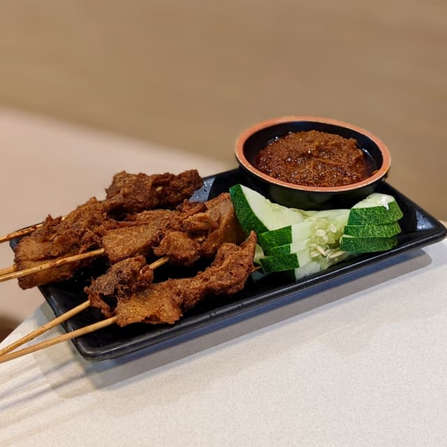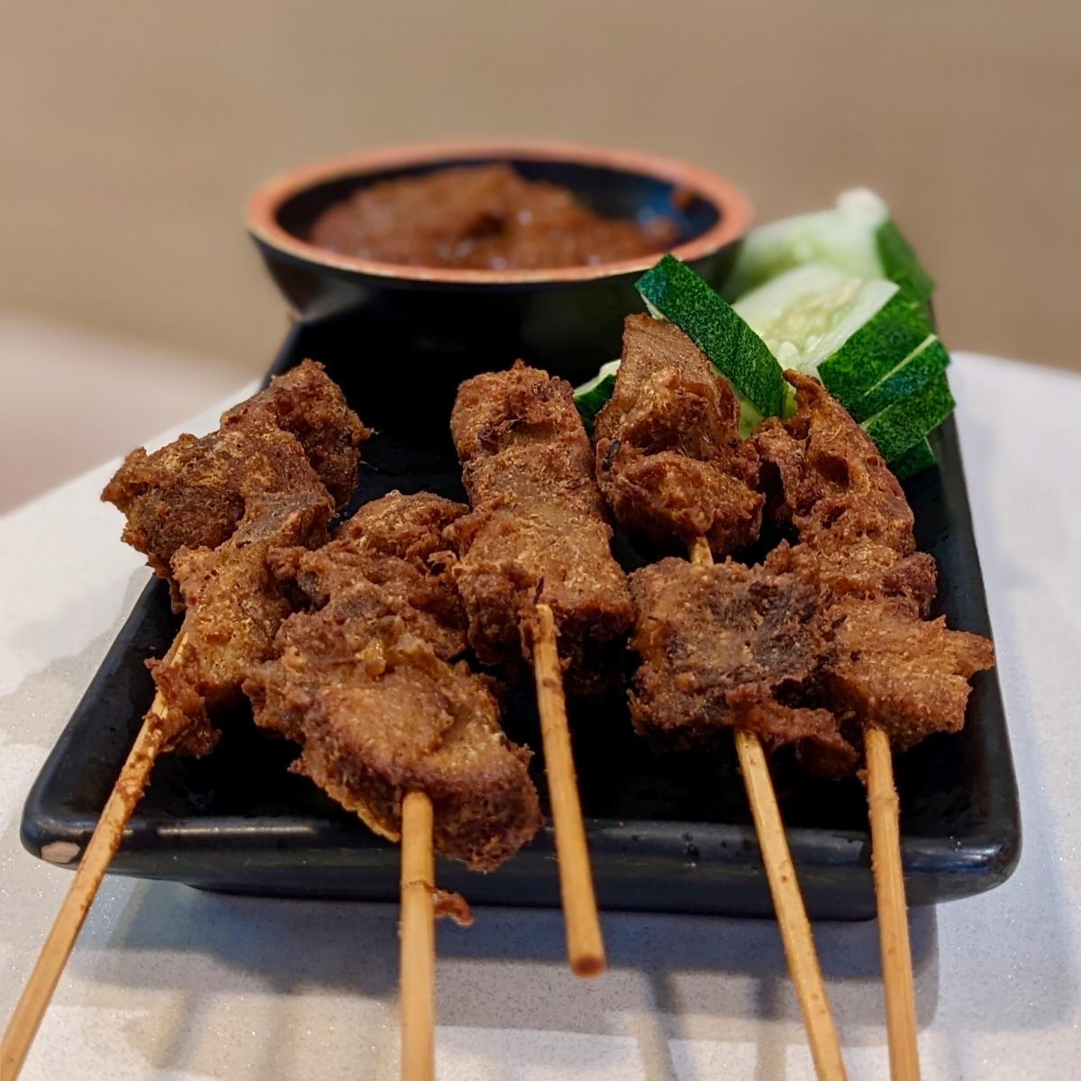 Toothsome fried monkeyhead mushroom satay, vegan according to the counter staff (menu wasn't labelled). 🍄🍢 Served with cucumber slices and accompanying spicy peanut sauce that was fragrant albeit oily. 🥒🥜🌶️ Nice side for sharing! (Allium-free, $7) #sgvegan #chinesefood #alliumfree #wholefoodplantbased #wfpb