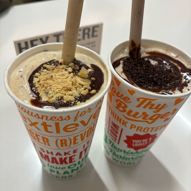 One of my favorite vegan burger joints! Mainly because I LOVE the milkshakes. We got the cookies n cream and peanut better 🥹