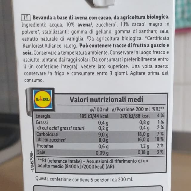 Buona bevanda di avena al cacao, anche se leggermente troppo dolce per i miei gusti se bevuta da sola. La trovo comunque piacevole e la apprezzo molto per la preparazione del porridge!
