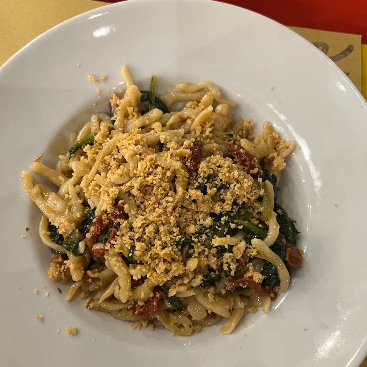 Piattone di strozzapreti con cime di rapa pomodorini e briciole di pane. Buonissimi!
