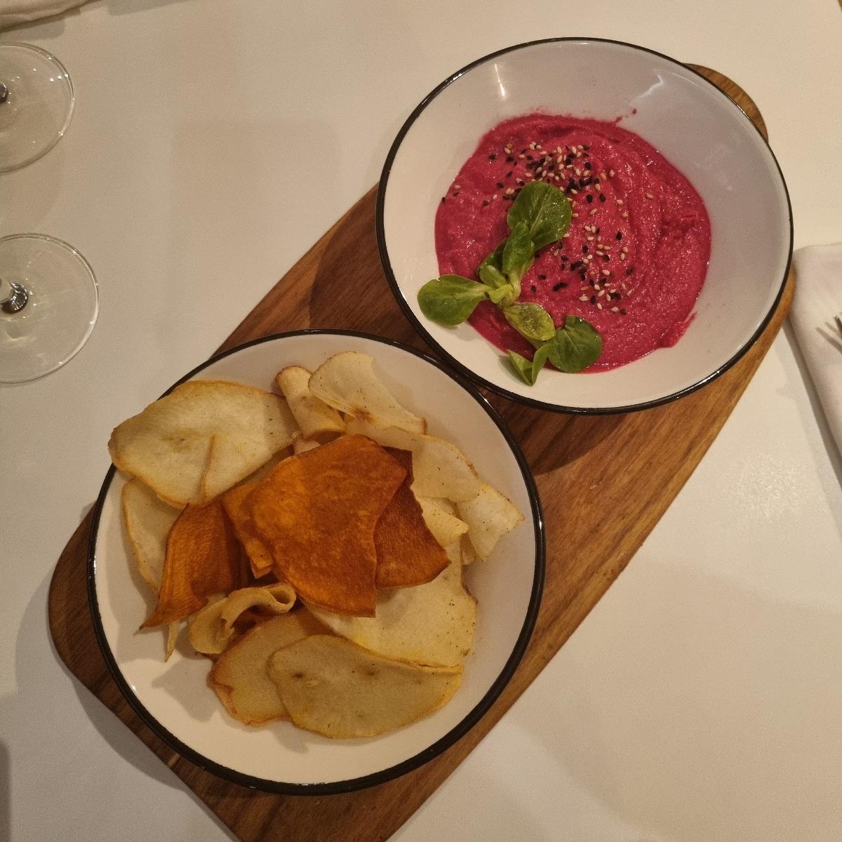 El hummus delicioso, y eso que no soy demasiado fan de la remolacha. Me hubiera gustado algún otro acompañamiento que no sean los chips, por ejemplo verduras, grisines o pancito