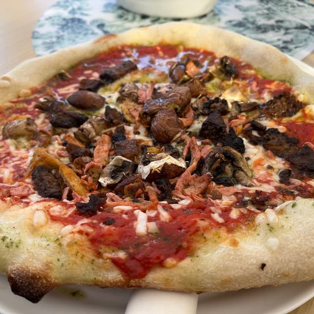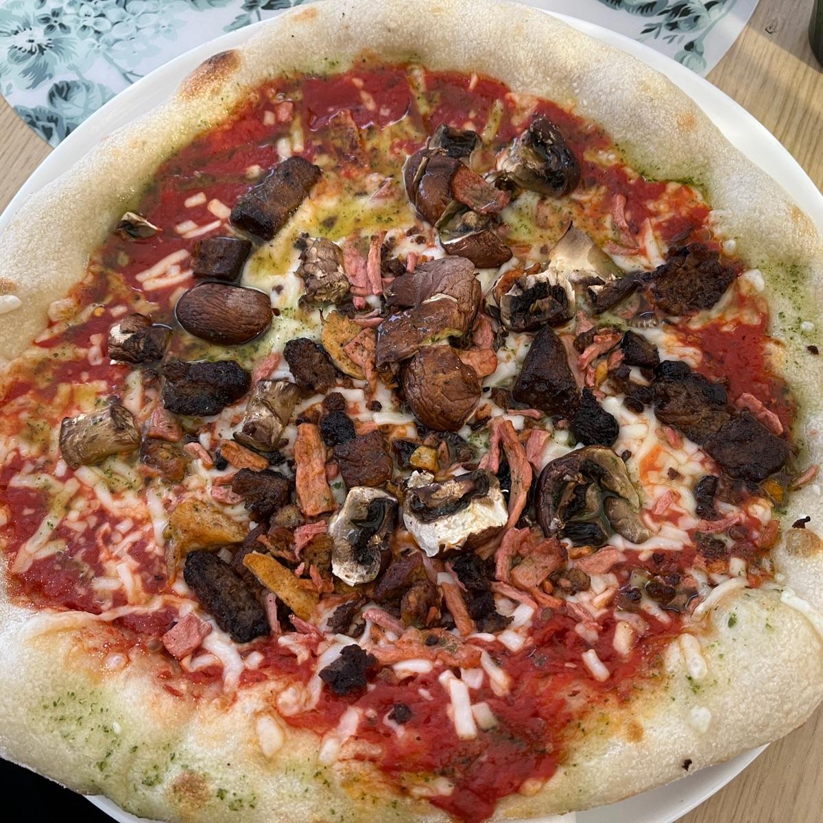 🍕🌱 I’d been wanting to check this place out as they used to run Vegan Express which we would order from often. They were so welcoming that we sat down for something even though we’d just eaten. 🤦‍♀️This pizza was £14 made with an amazing home made 7 grain cereal dough. It has a tomato 🍅sauce, vegan 🧀mozzarella, vegan chicken, vegan 🥓bacon and 🫒olives. Oh it was awesome. The location is great just off the Thames on the south bank in a cute little parade of shops and restaurants. It’s a bit chilly❄️ in the outdoor tent and I was wishing I had worn more layers and my hat 🧦and 🧣scarf. Worth a visit for sure! #veganlondon #londoneats #pizza #veganpizza #veganrestaurant #saveveganrestaurants
